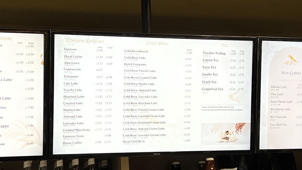 Coin De Rue Dessert Cafe, located in Los Angeles, offers a diverse menu of cakes, desserts, cold brews, and refreshing beverages. The selection includes indulgent options like Basque Cheese Cake, Matcha New York Cheese Cake, and Dalgona Frap. Customers praise the spacious upstairs seating area, great pastries, and strong coffee, making it an ideal spot for meetings or studying. The cafe's ambiance is described as chill and relaxing, perfect for catching up with friends or diving into work. Staff members are known for being friendly and welcoming, adding to the overall positive experience. Whether you're a dessert enthusiast or a coffee connoisseur, Coin De Rue Dessert Cafe provides a delightful culinary journey worth exploring.